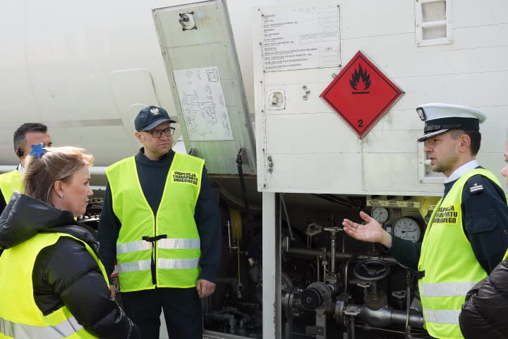 Przedstawiciele ISHTI wizytowali też MOP Brwinów Południe, gdzie zaprezentowano procedury kontroli drogowej ciśnieniowych urządzeń transportowych – cystern do przewozu towarów niebezpiecznych klasy 2 (cysterny LPG i LNG).
